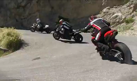 A ver, que levante la mano quien de los que leéis aquí no habéis sido partícipes de una buena "picada" con vuestros amigos al llegar a un puerto de montaña. No hablo de meterle el manillar en los riñones a "tu rival" ni de empujarlo "suavemente" fuera de la curva... digo el "no me sigues" o "yo subo más rápido", sin jugarse la vida (aunque no todos lo ven así), quemando un buen montón de adrenalina que luego se recupera con un buen almuerzo mientras se cuentan batallitas. Bien, ya os podéis imaginar que el ritmo siempre será diferente según el nivel de los participantes. Y cuando la "picada" la hace un grupo de stunts de esos que les encanta el drifting (ir todo el rato altísimo de vueltas con el neumático trasero derrapando ¡incluso en recta!) sólo puede producirse un espectáculo magnífico... como este:
